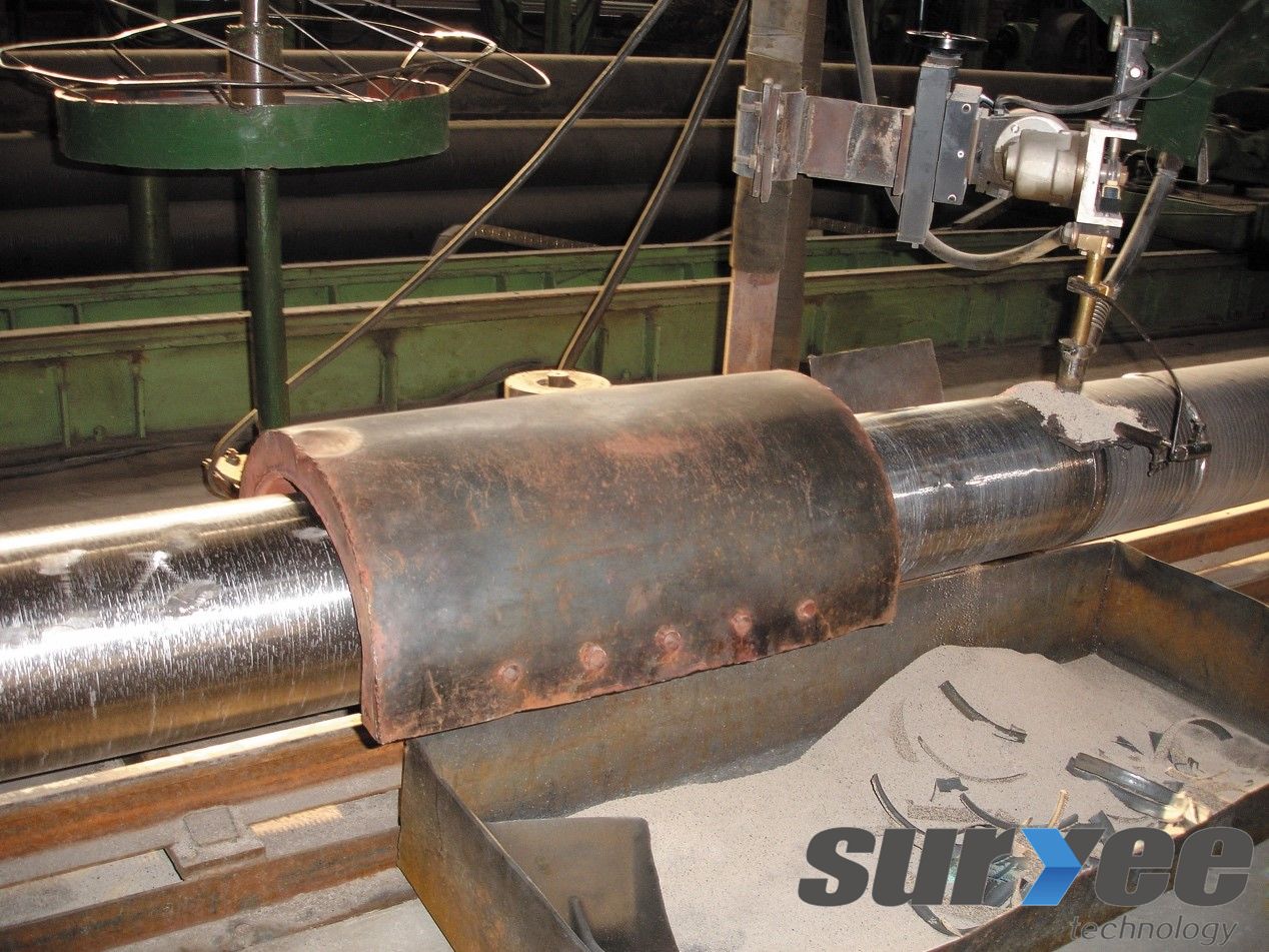 熱軋輥堆焊修復(fù)的工藝流程:軋輥表面清理→軋輥預(yù)熱→軋輥堆焊→軋輥緩冷→堆焊層外觀檢測→軋輥車削。 …