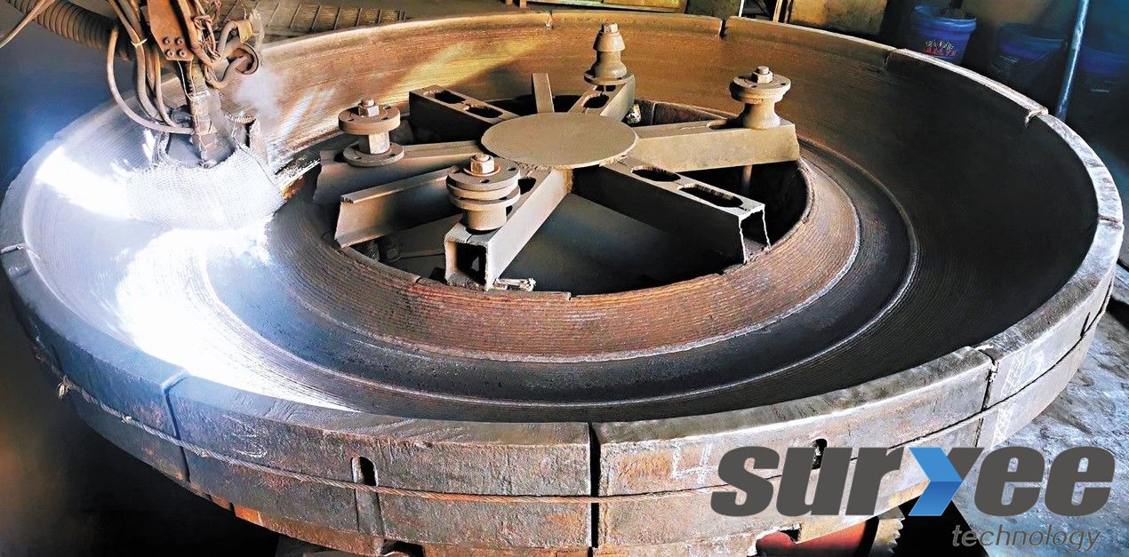 賽億科技SSR系列輥壓機表面堆焊專用材料包括過渡層、緩沖層、硬面層和耐磨花紋層。通過這幾種材料的合理搭配,形成輥面硬度梯…